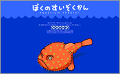 海や川に住む魚たちの動くイラストがいっぱい。いろいろなお魚と遊ぶことができるよ。