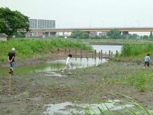 なんと、この男性は「北区荒川っ子クラブ」の主催者である太田桐さんという方。回りを見渡すとあちらこちらでゴミ拾いをしている親子連れや、若者たち、おっちゃんおばちゃんたちがいた。この人たちはみんな「北区荒川っ子クラブ」の方たち。今日はここ「北区子供の水辺」という場所で、「北区荒川っ子クラブ」の活動が開催される。活動を開始する前には必ず30分間、みんなでゴミ拾いを行うということだ。