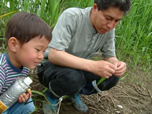 この後、投網漁では無事魚が捕れた。沼ちちぶ、ぼら、はぜ、銀フナ等、8種類ほど魚を捕まえた。子供たちが観察できるように水槽に移しかえて、名前と特徴を本で調べた。今後1ヶ月後、1年後、5年後とこの場所で捕れる魚がどう変化していくかを調査するのが、大きな目的らしい。