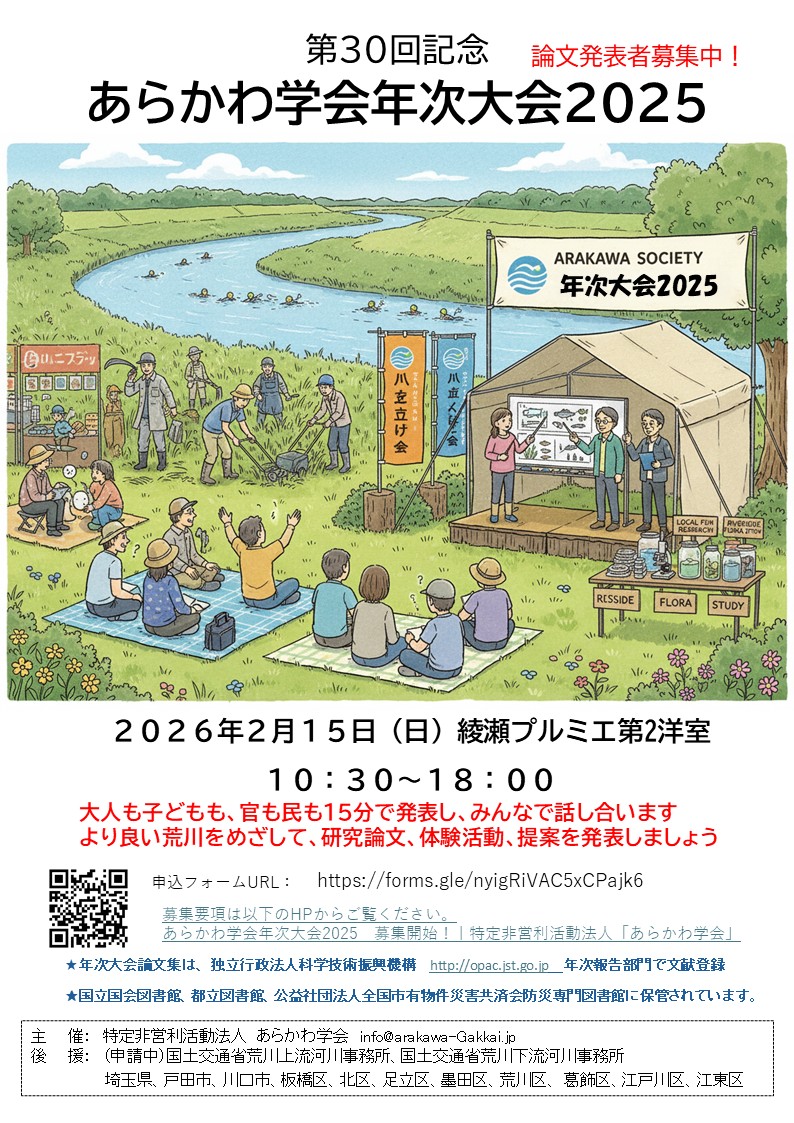 ぜひ、荒川に関する活動・研究・論文をお寄せください。ZOOm発表、参加もできます。